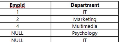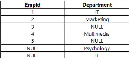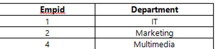 As you can observe, all the data is listed from the selected column, EmpId, of the Left table J1 whereas the right side table shows the matching and Null for the missing data for the respective Left column.