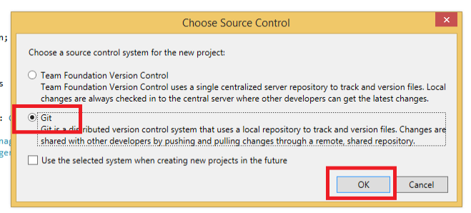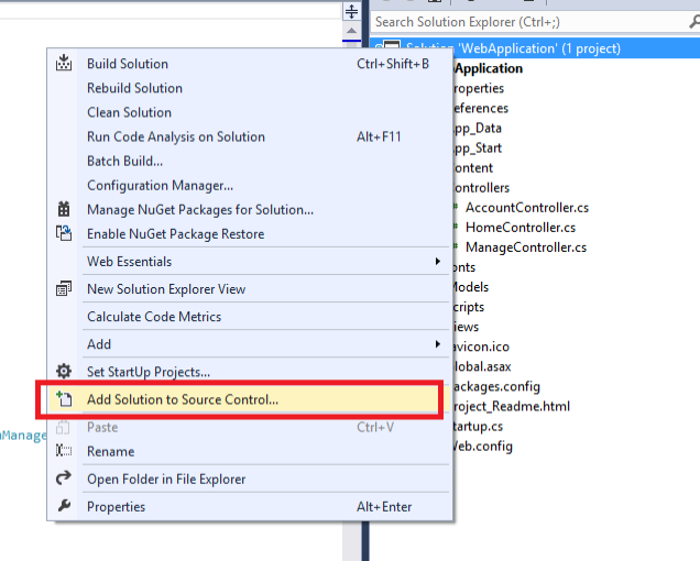 Step 3: Right click on project solutions, click on Add Solution to Source Control, then select Git radio button and click OK.