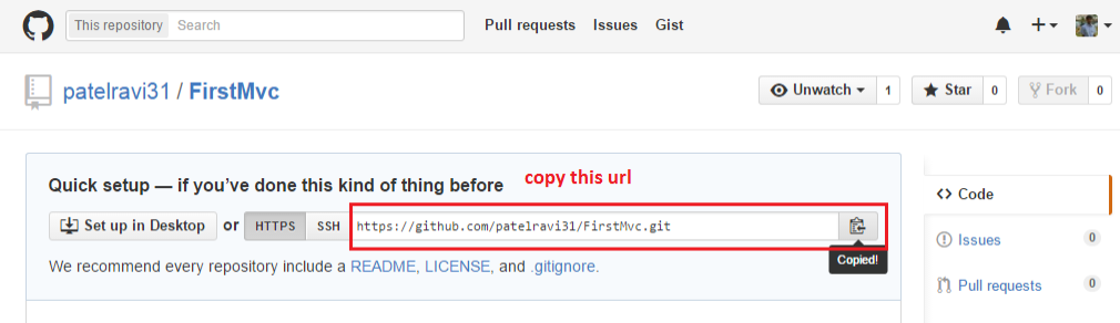 Now you have created a repository, copy the url.