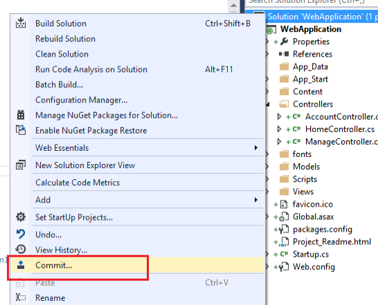 Step 5: Now right click on project solution and click on Commit
