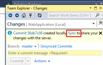 After commit you will get a message like the following. Then click on Sync to share your changes with the server.