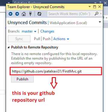 Then enter your github repository url and then click Publish.