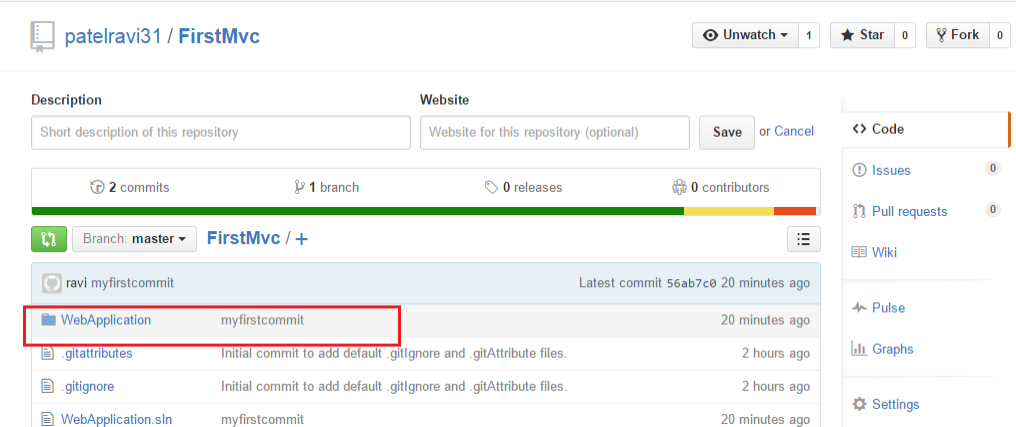 Enter a commit message you can write anything. Here I am giving message myfirstcommit and click on Commit.