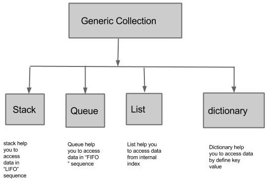 - The System.Collection.Generic namespace contains several new generic collection classes. You need to use the generic collection classes instead of the collection classes in the System.Collections namespace.