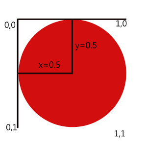 You need to select a proper anchor point for your XAML/Shape pushpin too. It's actually nothing but a point object in a 2D space. I want my anchor point to be in the center of the sphere. So if I put my sphere in a 2D space and 1 is the max limit in both the X and Y axis, you'd determine that (0.5, 0.5) is the center of the sphere. But this 2D co-ordinate system is actually a tad different. Kindly allow me to show in the following picture: