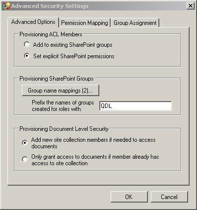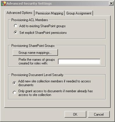 If the “Set explicit SharePoint permissions” option is selected, the settings on the Permission Mapping tab (as opposed to the Group Assignment tab) apply.
