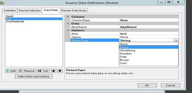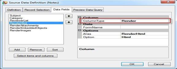 And in this section the user can select the Notes fields from the sample items or database items using the data query option.
