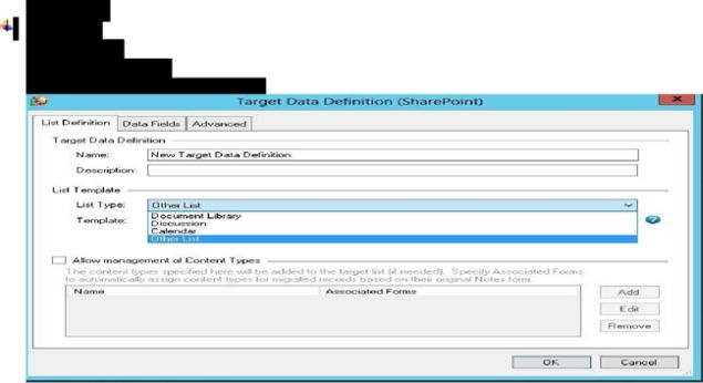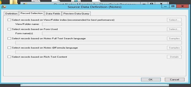 The data fields tab is very important for migration, here only the user should decide the Notes (source) fields to migrate to SharePoint (the target).