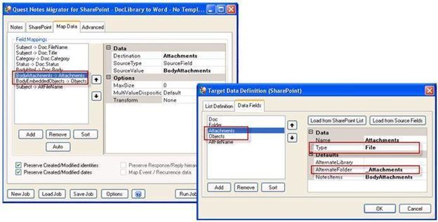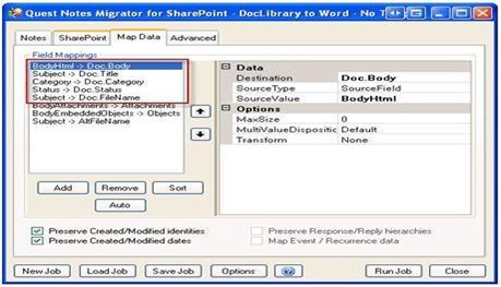 - Quest Notes Migrator for SharePoint (NMSP) can be used easily. You just need to define fields that will be used from Lotus Notes, those from the SharePoint site (local or remote as we can use Web Service connection), map Lotus Notes fields with SharePoint fields and that's all.