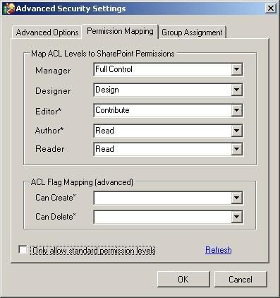 Similarly, the ACL Flag Mapping section allows you to assign a SharePoint permission level to certain access flags (Can Create, Can Delete) in each Notes ACL entry.