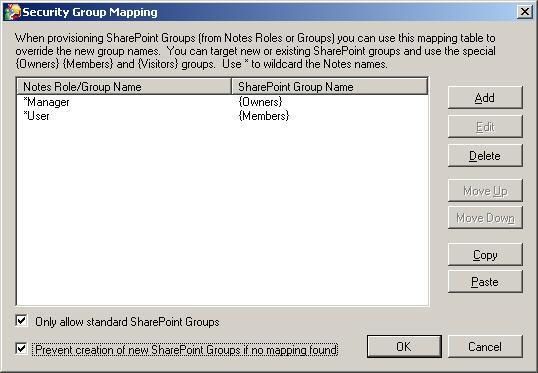 Otherwise, a new SharePoint Group with the desired name will be created. If we are mapping to a SharePoint group that is not in this mapping table, we will create a new SharePoint Group with the old Notes role or group name.