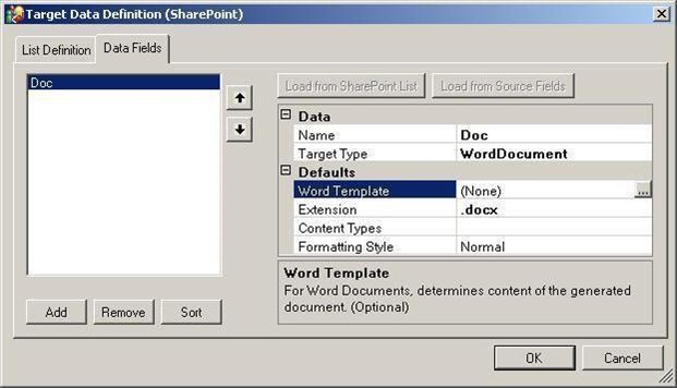 Note that your Target Data Definition may well contain additional target fields that are not part of the generated Word Document.