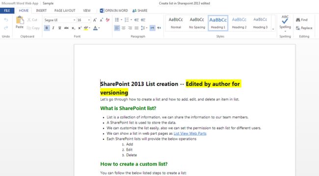 Step 8: After Check-out the document, you can able to edit the document as shown below,