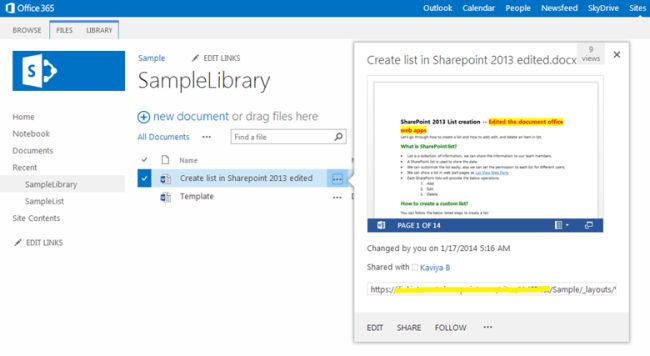 - We can share the link of the document to another user and allow the recipient to view the document by using office web apps.