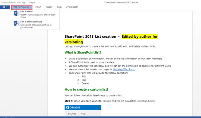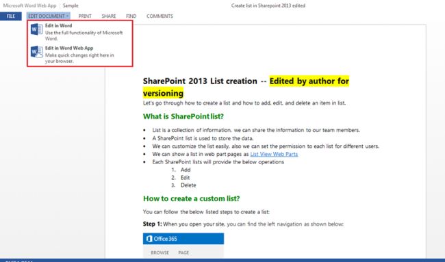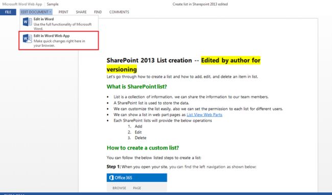- Edit in word web app (office web app feature) - If you are choose Edit in word web app, you can edit the document browser itself.