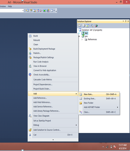 Step 4. Now right-click on the project in Solution Explorer then click on "Add New Item".