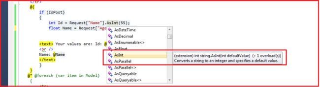 Please have a look at the builtin extension methods that Razor offers in the following image.