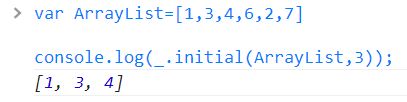 Returns everything but the last entry of the array. Especially useful on the arguments object. Pass n to exclude the last n elements from the result.