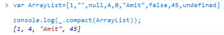 This is an amazing function of Underscore.js. Every time a developer becomes stuck with JS falsy values such as undefined or null. This function surprisingly removes all the falsy values from the given array and returns a copy of the array with all falsy values removed.