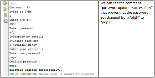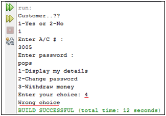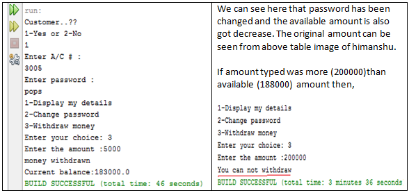 - Can check his/her details (a detail consists of account number, password, name, address, contact, account balance)