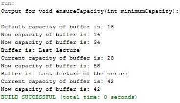 - System.out.println("Output for void ensureCapacity(int minimumCapacity):");