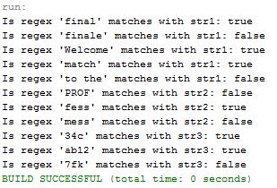 - System.out.println("Is regex 'final' matches with str1: " + str1.matches("(.*)final(.*)"));