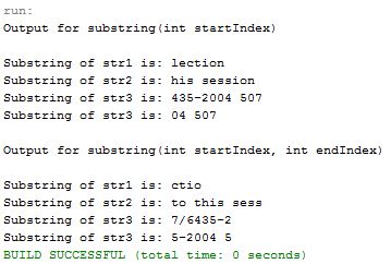 - System.out.println("Output for substring(int startIndex, int endIndex)");