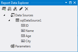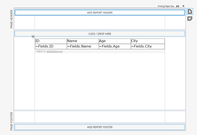 - Now to put the fields on the report. Just drag the data source , here "SqlDataSource1" to the Report Body section and you're done.