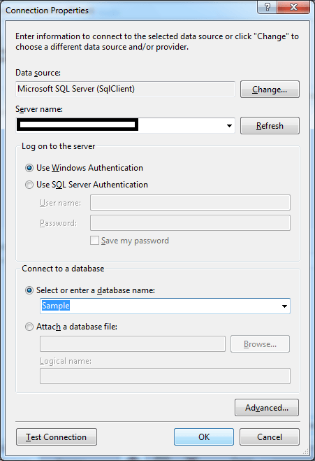 - Define the connection to SQL using the “New Connection” button and click “Next”. You can also name the Connection String to whatever you want to.
