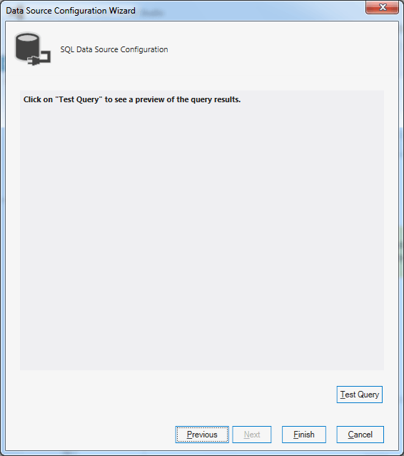 - In the next screen, you can test your query results using the “Test Query” button. If you're happy with the result set, click “Finish” else go back and modify the data.