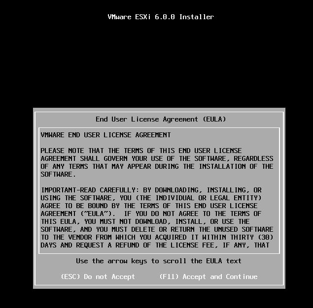 - Once you hit enter to continue it will ask to accept the licensing agreement, click F11 to accept, and continue.