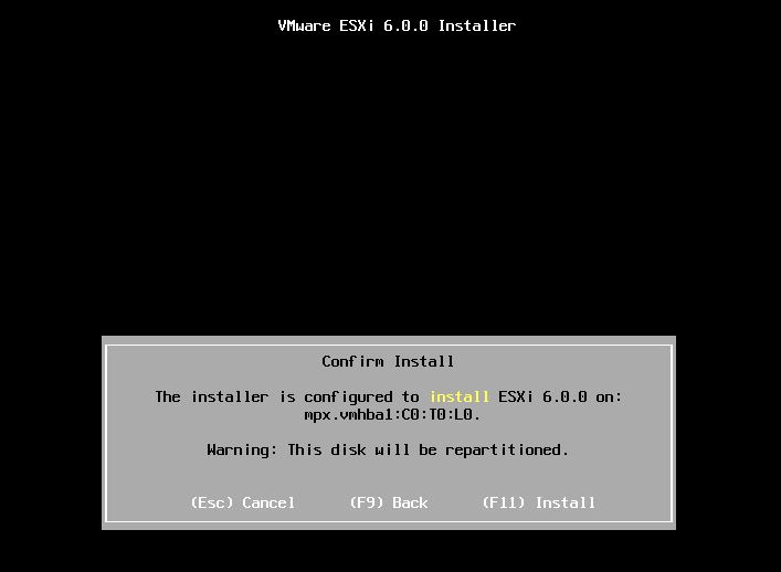 - Now it will show you all the disk drive’s connected to your server, select the drive on which you want to install ESXi setup and hit enter or if it’s single drive then you may get a direct screen as below to install by pressing F11.