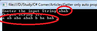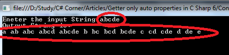 Output = a, ab, abc, abcd, abcde, b, bc, bcd, bcde, c, cd, cde, d, de, e