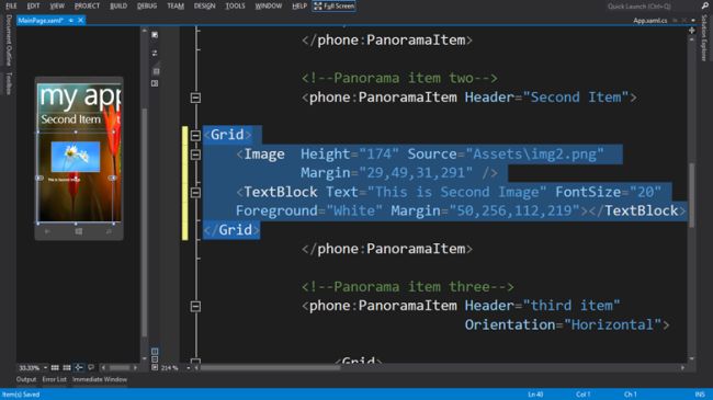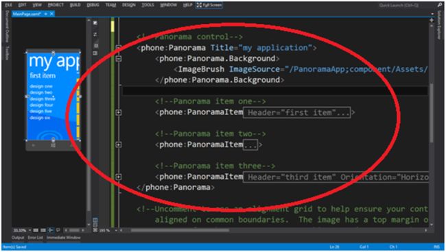 Step 3: Your MainPage.xaml that is the Default Page that will look like this as collapsing all the "Panorama Items".