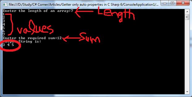 - private static void FindRequiredSumSubArray(int[] arr, int sum)