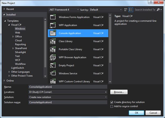 Create a new console application named "ConsoleApplication1".