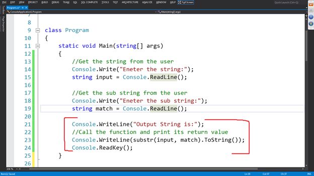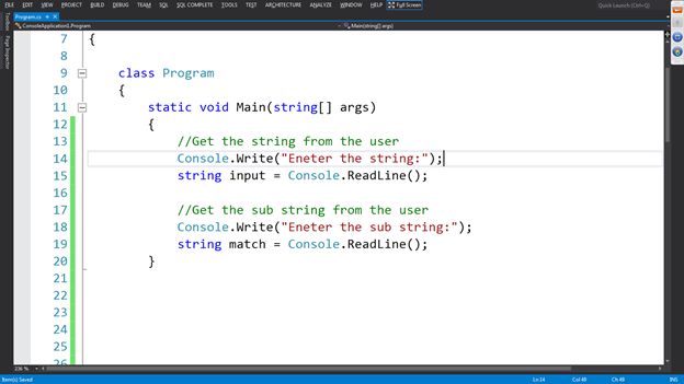 - Console.Write("Eneter the sub string:");
