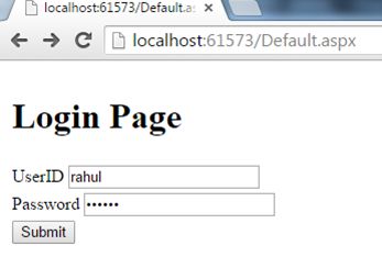 - Response.Write("Welcome " + Session["UserID"].ToString());