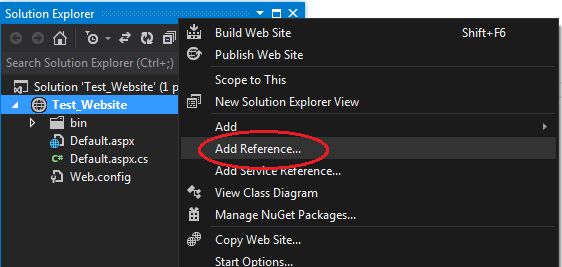 Add the reference of the downloaded Npgsql.dll by right-clicking on the website in the Solution Explorer.