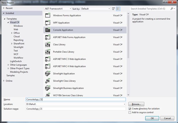 Step 1: Create the first Console application in C# named "ConsoleApp_CS".