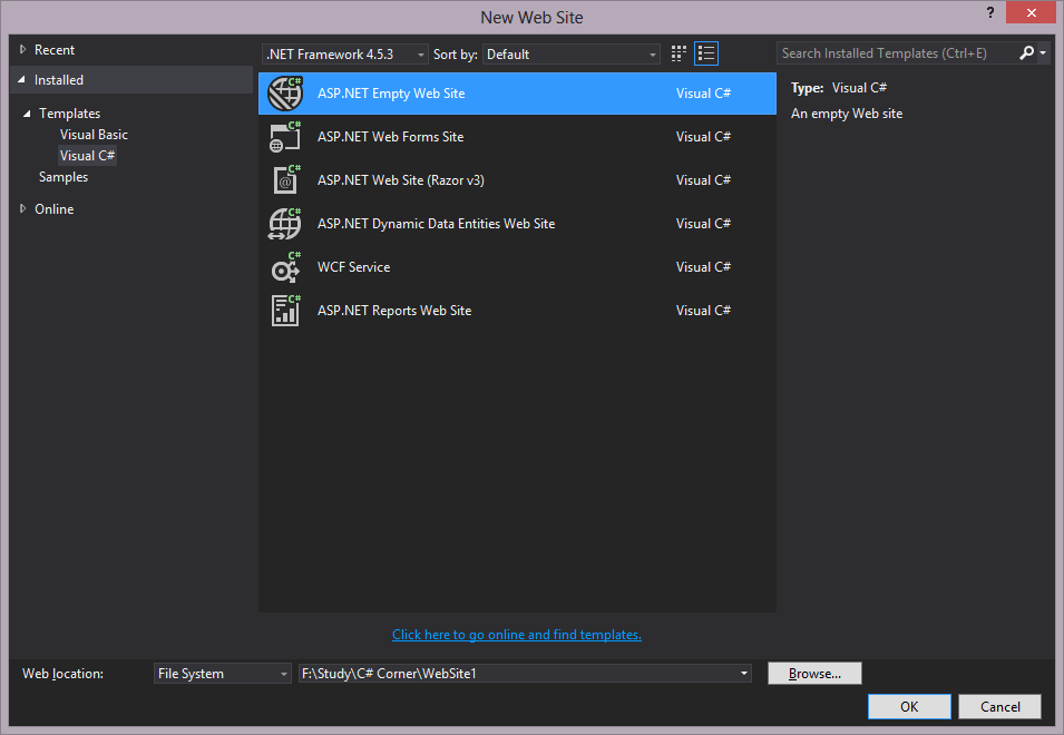 I will save its returning value into a variable in my C# code. To do that I will create a new website named "Website1".