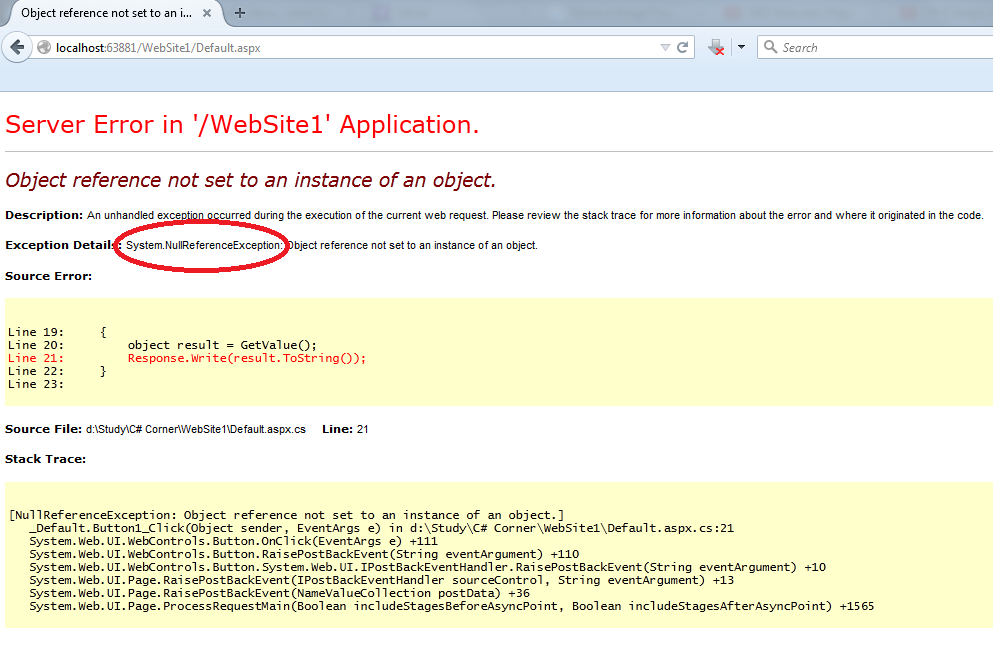 But in the second result it will provide a System.NullReferenceException.