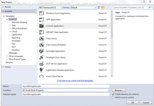 - CloudStorageAccount: This is a reference to storage account (we will create a new sample storage account in this article).