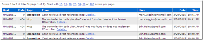 ELMAH is the popular exception handling facility for ASP.NET application that makes your life a lot easier when troubleshooting. They also make it very simple to drop ELMAH into an application and start collecting a ton of information on unhandled application exceptions. Similar to Glimpse, ELMAH makes accessing that information ever so easy through a web page associated to your application’s domain.