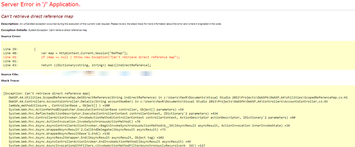 A perfect example might be how we indirectly disclose information about internal libraries we use in our application that would allow a targeted attack. Take an example where an application has disclosed that they are using Entity Framework. Imagine a zero-day exploit for EF is discovered, this could allow the attacker to possibly focus in on this information. In addition, if an YSOD doesn’t directly expose a security flaw, it could allow a malicious user to add to a profile they are building on your application.