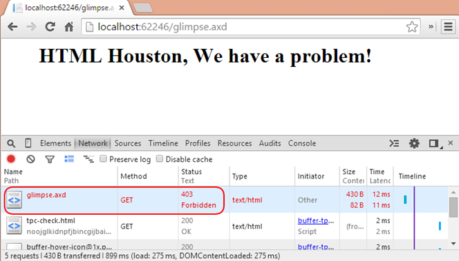 The fact that our error page is saved as a Active Server Page Extension is one of those ASP.NET hoops required in order to send back the correct content type (text/html) which properly allows the HTML of our error page to be render properly.