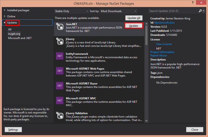 But from a security standpoint, an even better features is the ease of updating those installed packages when authors release updates to their libraries and frameworks.