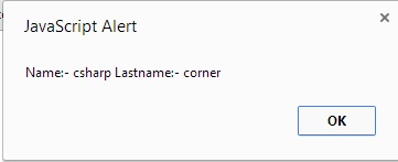- alert("Name:- " + obj.name + " Lastname:- " + obj.lastname);