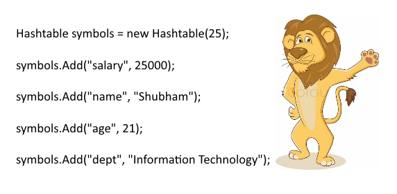 Key/value pairs are entered into a hash table using the Add method. This method takes two arguments: the key and the value associated with the key. The key is added to the hash table after computing its hash value. Here is some example code.