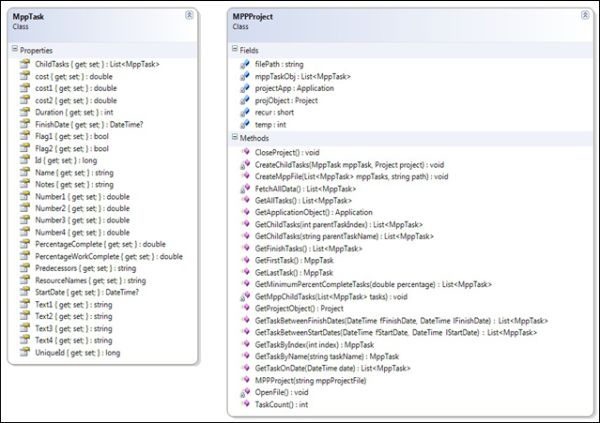Now the lsMppTask object can be used to access the entire information present in the MPP file using methods as shown in the Class specification. In this way, the library can be used for accessing all information present in an MPP file.
